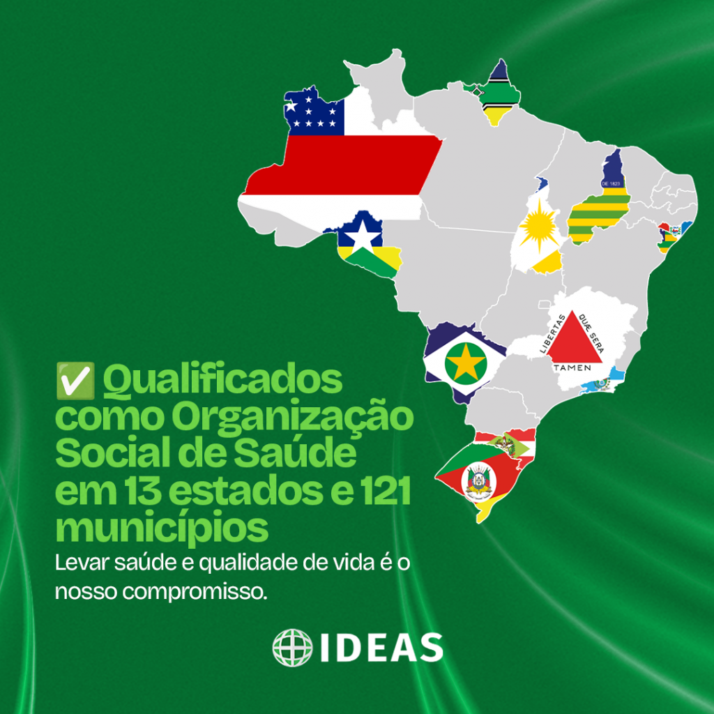 O Instituto de Desenvolvimento, Ensino e Assistência à Saúde (IDEAS) completa neste sábado, dia 18, nove anos de gestão em saúde pública. Com sede administrativa no Bairro Estreito, em Florianópolis (SC), o IDEAS hoje atua em nove estados de todas as regiões do Brasil.
